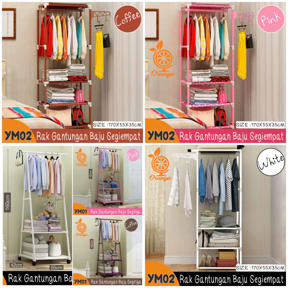 Harga rak baju gantung besi lemari pakaian minimalis murah awet kokoh rm004.